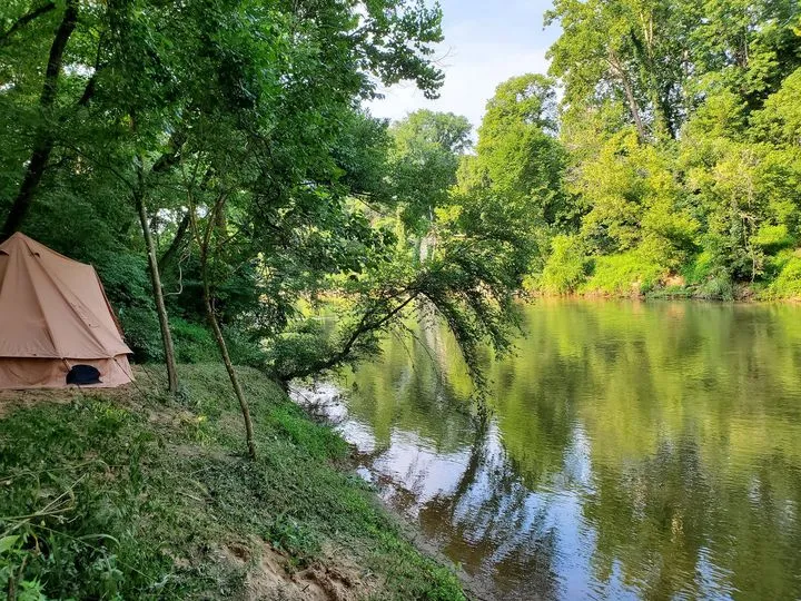 Cozy glamping tents by the river for couples.
